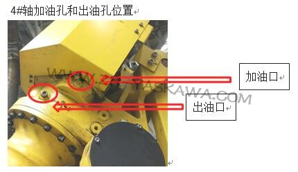 加油完成后,拆除 1#轴,2#轴,3#轴,5#轴加油口油嘴,所有排油口需打开,运动各关节