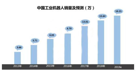 2017年,我国工业机器人销量为13.81万台,同比增长58.7%,也是增速最快的一年。到了2018年,我国工业机器人销量已经达到15.64万台,连续五年位居世界销量第一。